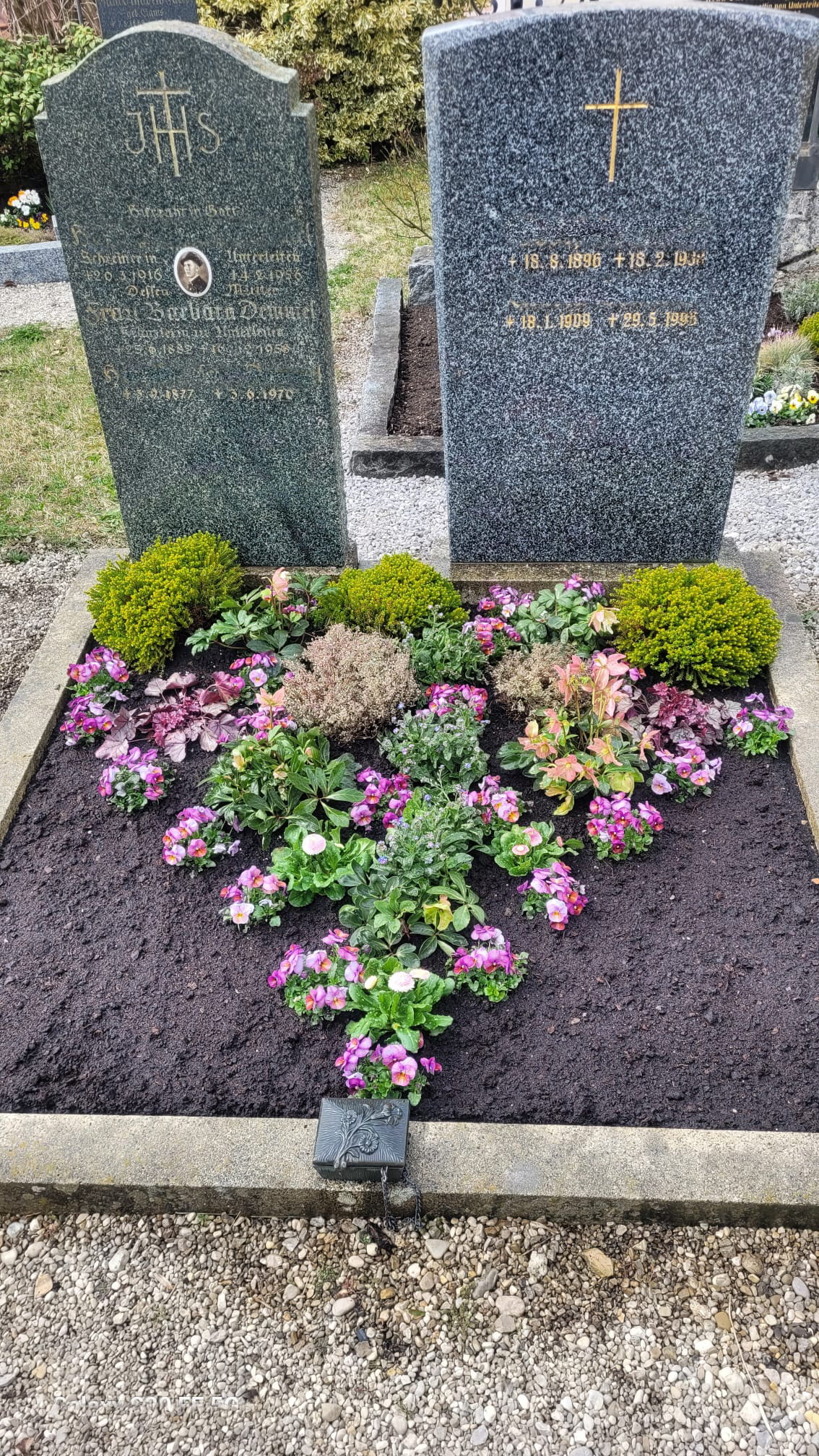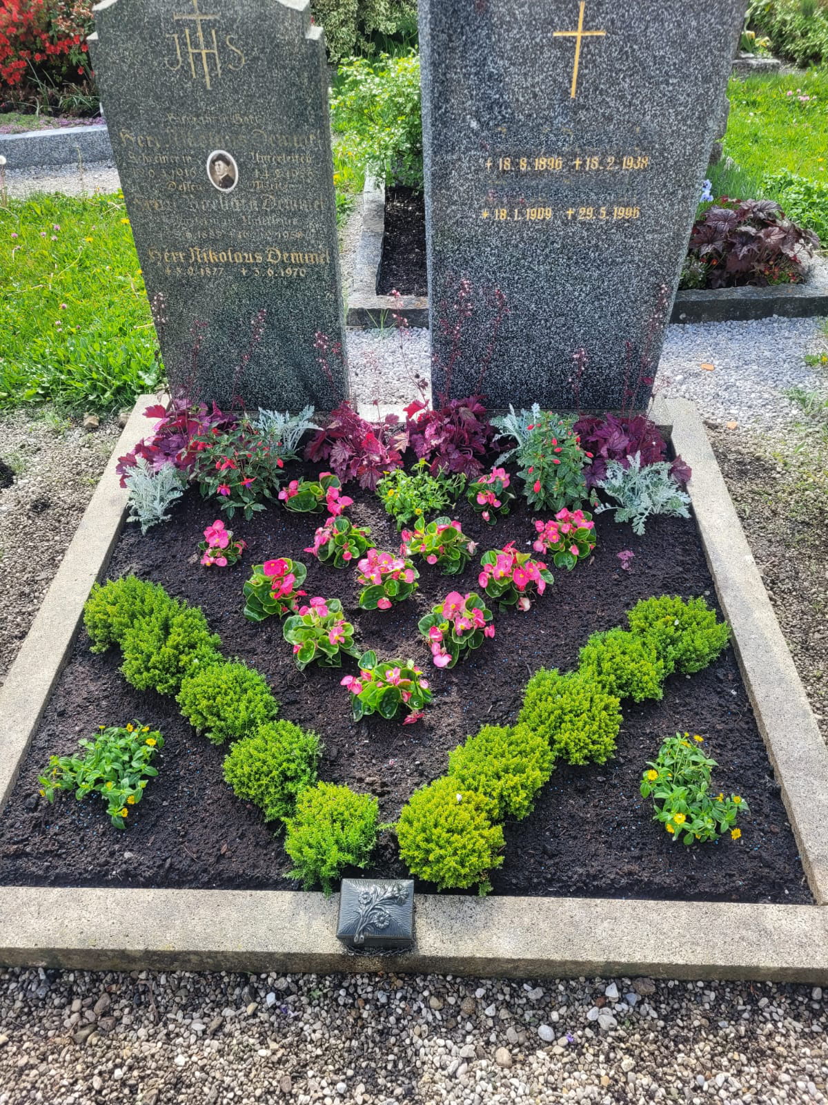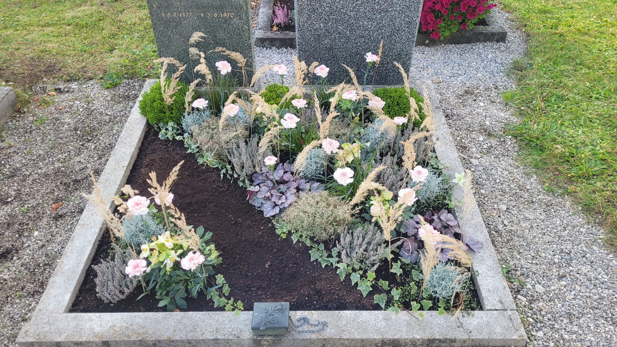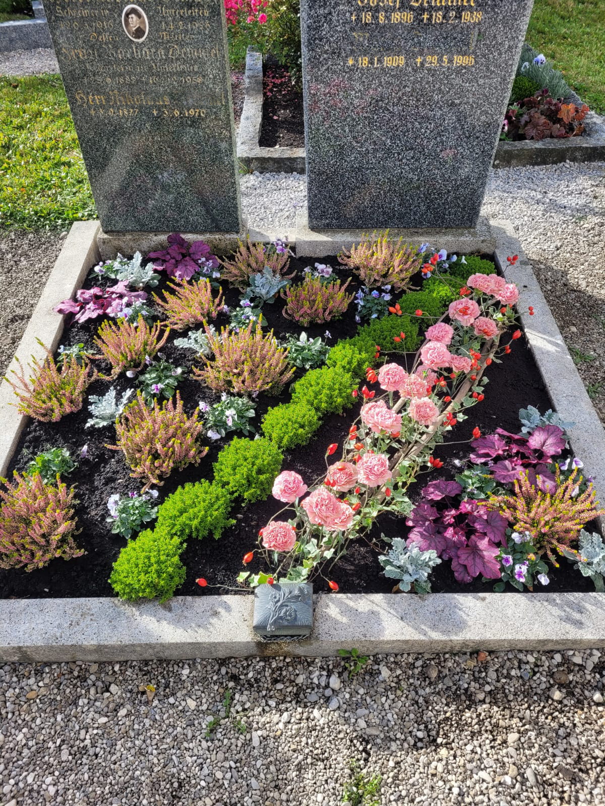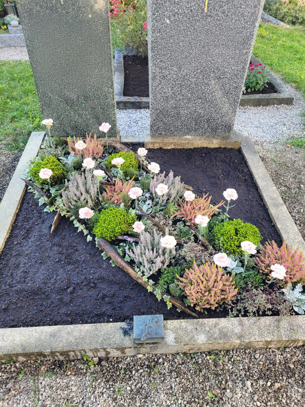 Je nach Jahreszeit bieten wir die Bepflanzung mit saisonalen Blumen und Pflanzen an. Ob Frühlingsblüher, Sommerflor, Herbstgestecke oder winterfeste Arrangements – wir sorgen dafür, dass das Grab zu jeder Jahreszeit passend und ansprechend gestaltet ist.